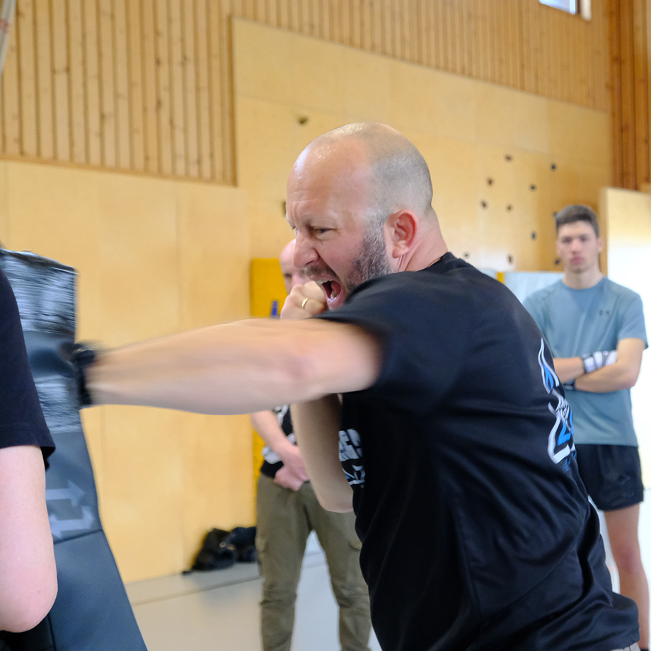 Zuerst üben wir gemeinsam die Techniken in der Halle und später geht’s raus ins Freie, wo Du die einmalige Chance hast das Gelernte unter erschwerten Bedingungen zu üben: auf rutschigem Untergrund, bei eisiger Kälte und mit dicker Winterbekleidung.